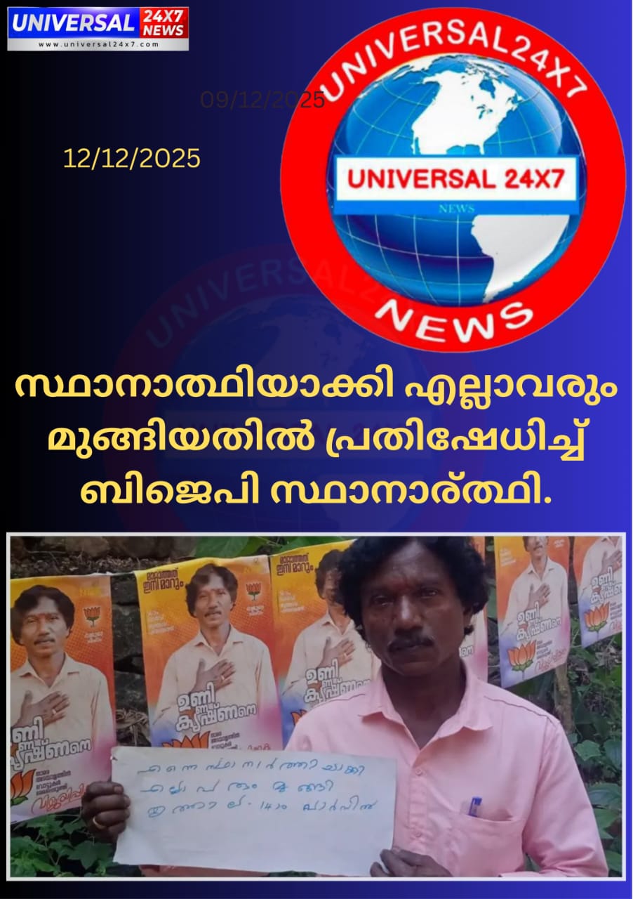 സ്ഥാനാത്ഥിയാക്കി എല്ലാവരും മുങ്ങിയതില് പ്രതിഷേധിച്ച് ബിജെപി സ്ഥാനാര്ത്ഥി.