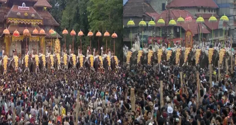 ജനസാഗരത്തെ സാക്ഷിയാക്കി തൃശ്ശൂർ പൂരം. മുണ്ടത്തിക്കോട് വെടിക്കെട്ടുപുര ദുരന്ത പശ്ചാത്തലത്തിൽ വെട്ടിച്ചുരുക്കിയ സമയത്തിലും പൂരപ്രേമികളുടെ കണ്ണും മനസും നിറച്ചായിരുന്നു കുടമാറ്റം നടന്നത്. വിശ്വ ഗുരു കണിമംഗലം ശാസ്താവിൽ തുടങ്ങി ഘടക പൂരങ്ങൾ ഓരോന്നായി പുഴ കടലിലേക്ക് എന്നപോലെ വടക്കുനാഥ സന്നിധിയിലേക്ക് എത്തിച്ചേർന്നു. ചെമ്പുക്കാവ് ഭഗവതിയുടെ തിടമ്പേറ്റി കൊമ്പൻമാരിലെ ഏകഛത്രാധിപതി തെച്ചിക്കോട്ടുകാവ് രാമചന്ദ്രൻ തലപ്പൊക്കത്തോടെ നിന്നു.